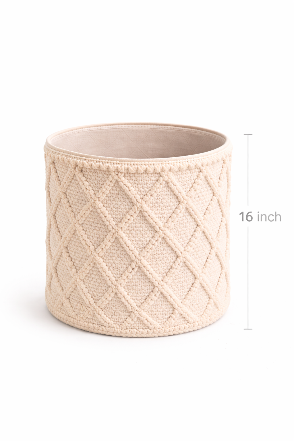 Boho Cotton Rope Laundry Basket with Textured Diamond Pattern – Neutral Woven Storage Bin for Home Organization